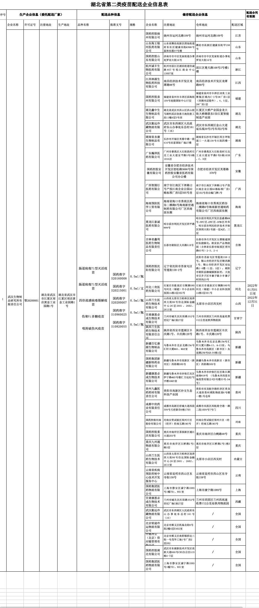 湖北省第二類(lèi)疫苗配送企業(yè)信息表