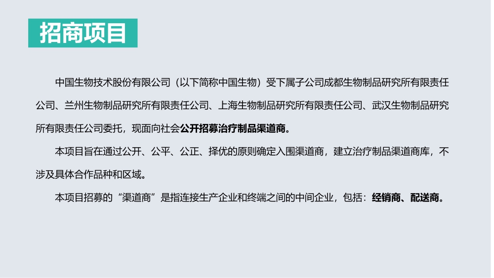 2025至2026年中國(guó)生物治療制品渠道商招商公告